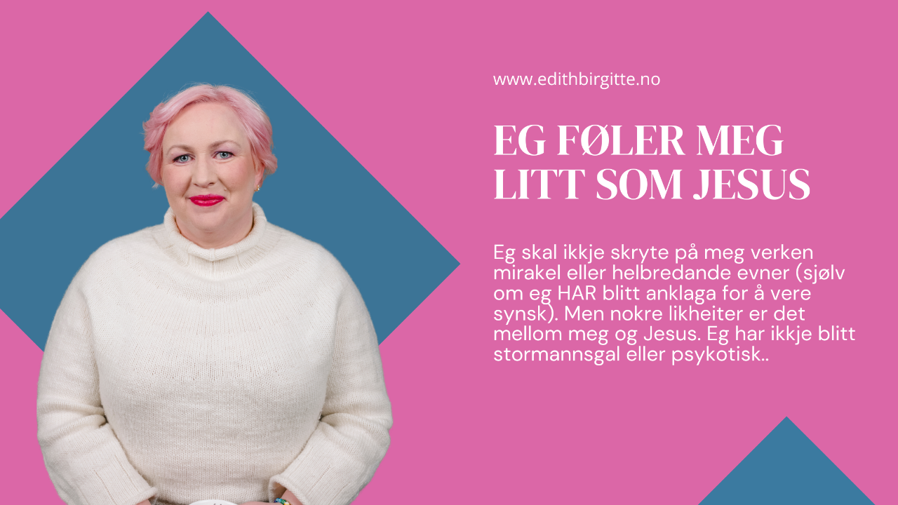Og no valgte eg å blogge som nummer fire. For det gir meg stor glede å få dele om eigenomsorg og emosjonell intelligens. Det får meg til å føle at eg hjelper folk. Og folk kjem til meg og fortel korleis dei har endra livet sitt litt for å få det litt bedre etter å ha lest noko eg har delt på internett. Og akkurat derfor føler eg at eg kan sei at eg er litt som Jesus! Haha, neida, eg skal slutte med det no. Kanskje..
